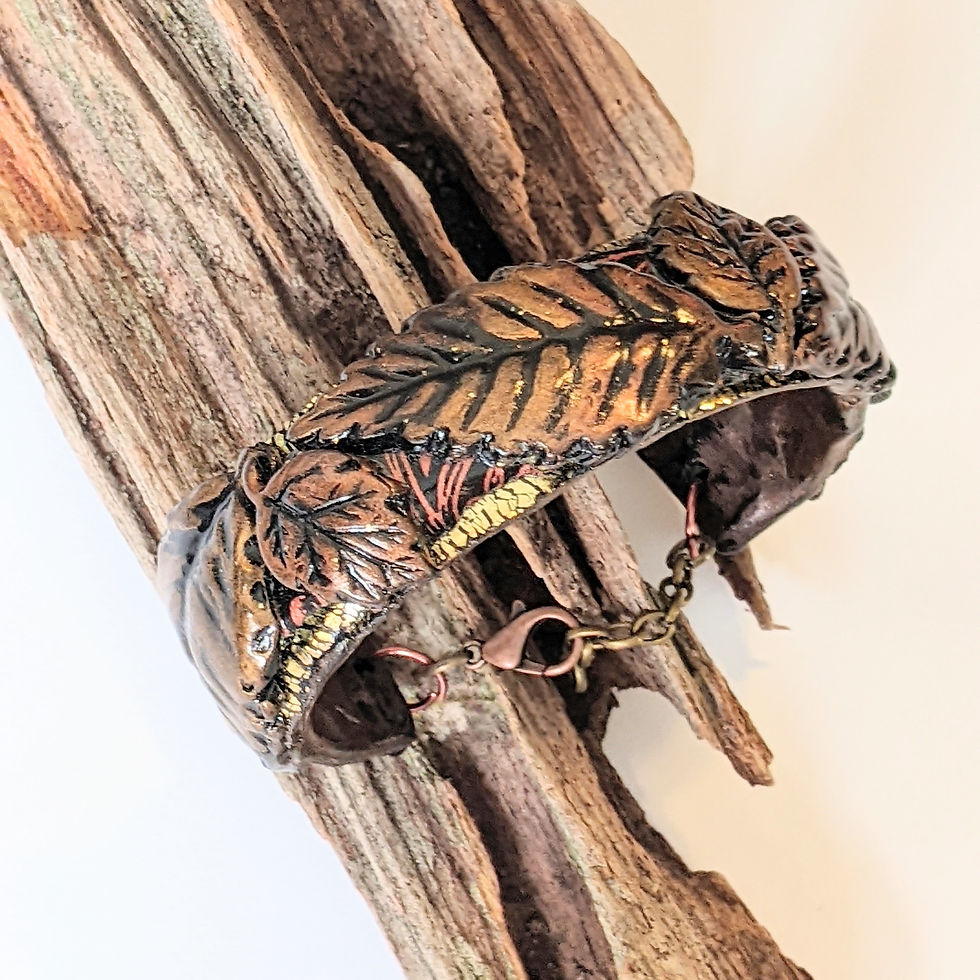 Forest Floor Bracelet, Rustic Leaf Cuff, Faux Wood Grain Jewelry